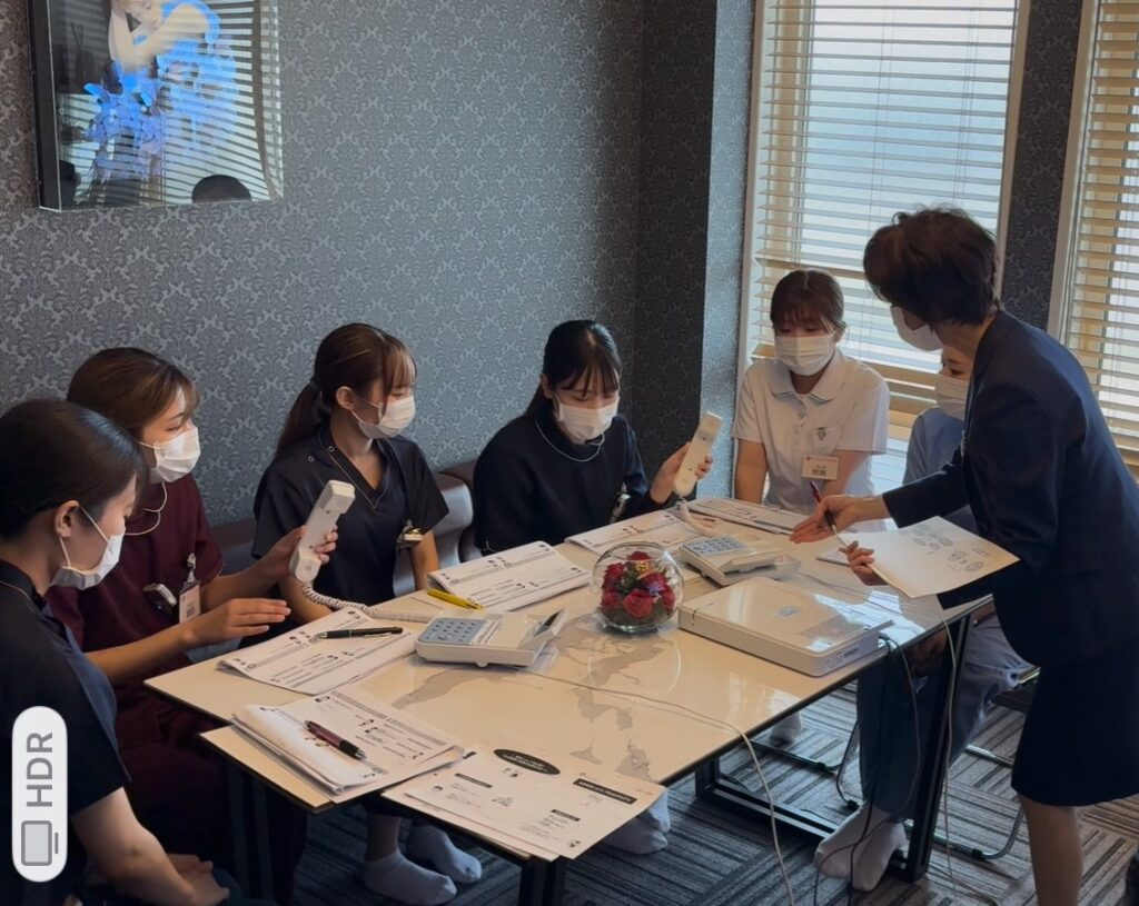 外部講師による接遇の研修では、実際に電話を用いて問い合わせ対応の実践を行いました。その中で、クッション言葉や配慮のある言葉遣いによって相手に与える印象がより良くなることを感じ、丁寧な対応を意識することの大切さを学びました。また、挨拶・笑顔・身だしなみといった基本的な点に加え、「お待たせしております」など配慮の言葉を一言添えることの大切さも改めて実感しました。今後の業務でも、患者様に安心していただけるよう丁寧な対応を心がけていきたいと思います。