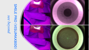 SMILE Proは、従来のSMILE(VisuMax 500)と比較してレーザー照射時間が短縮されており、2MHzの超高速レーザーを使用することで、照射時間は10秒まで短縮されています。これにより、手術中の患者様の負担軽減が期待されます。また、術後の視力回復が早い点も特徴の一つです。